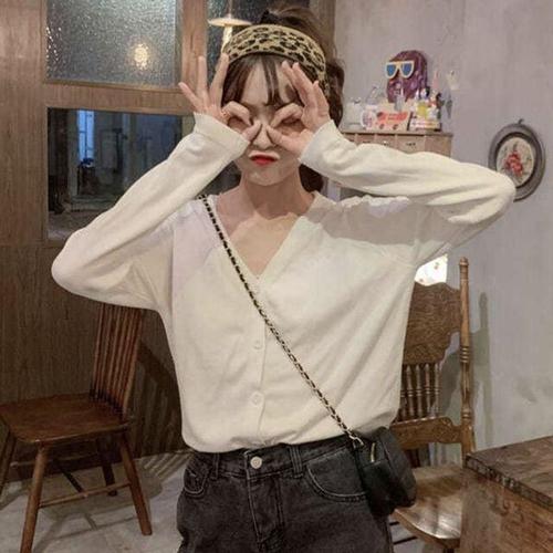 [에이비에프지]V넥 솔리드 숏 긴팔 니트 가디건 APZ5ZY31G