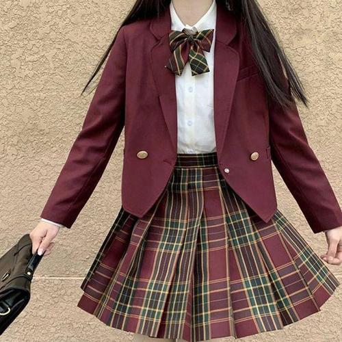 [에이치플러스몰]금장버튼 버건디 여자 숏자켓 교복 학생복 여자교복