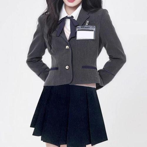 [에이치플러스몰]라인포인트 그레이 여자 숏자켓 교복 학생복 여자교복