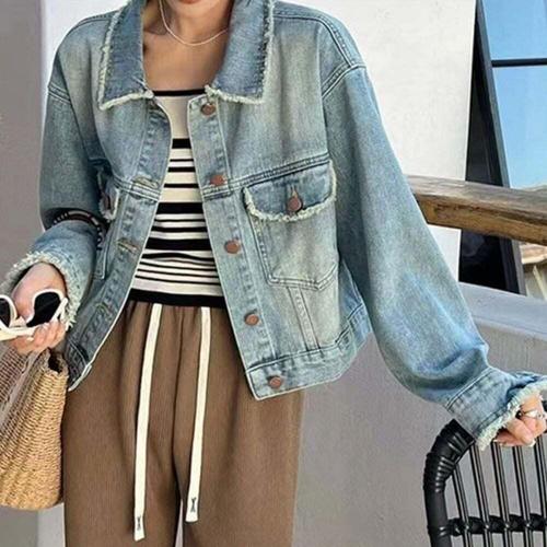 남친 데님 빈티지 캐주얼 센스있는 청자켓 코트 숏 봄가을 퍼 트리밍 시크 재킷 DUCHI3