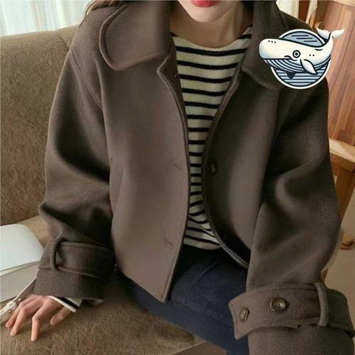 아톰닉 2025 초특가 여성 가을 겨울 날씬해 보이는 숏 도톰한 단색 모직 긴팔 코트
