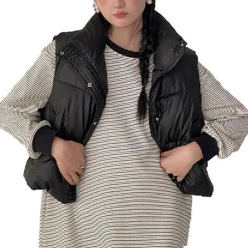 [다잇템_패션]여자 박스 하이넥 숏패딩 그런지 패딩조끼_3