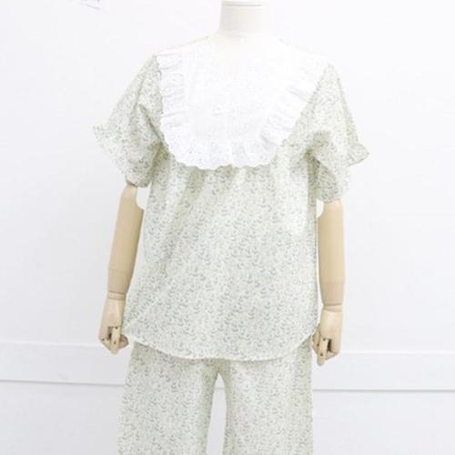 [신상오픈런]레이스넥 프릴 반팔 반바지 여성 아사면 수면복 (38169856)