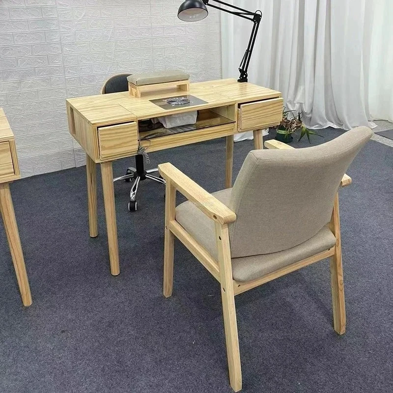 레트로 일본식 매니큐어 테이블 뷰티 살롱 원목 전문 네일 테이블 수납 진공 청소기 이중 매니큐어 테이블 H