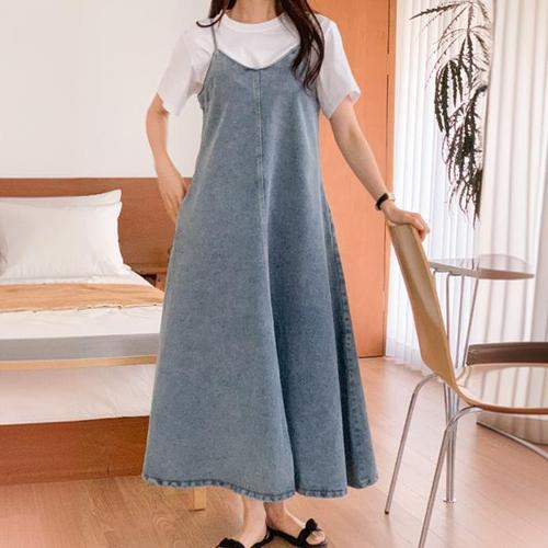 [신상오픈런]에이라인 민소매 뷔스티에 워싱진 순면 청원피스 (30094275)