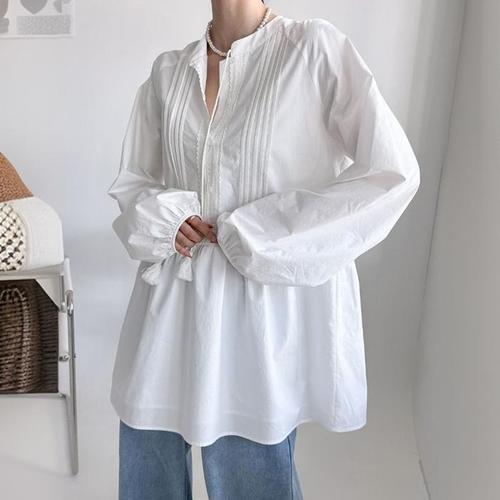 [신상오픈런]핀턱원피스 루즈핏 벌룬긴팔 프린지 순면 롱블라우스 (30668671)