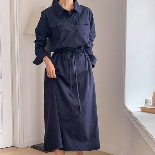 [신상오픈런]허리끈원피스 셔츠핏 출근룩 봄나들이 순면 미시룩 (30489494)