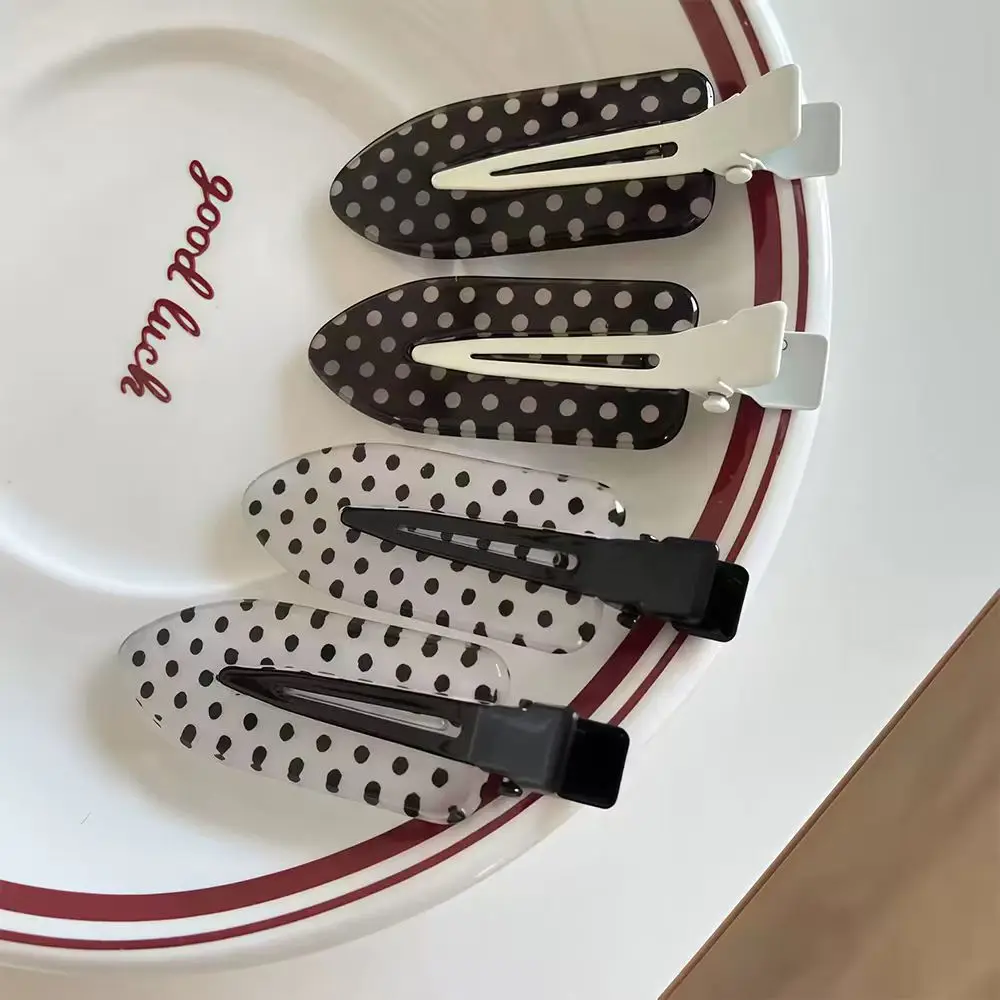 4개입 블랙 화이트 도트 무늬 아세테이트 헤어 클립 한국 스타일 패션 다용도 헤어 액세서리 메이크업 엣지 장식 헤어 클립