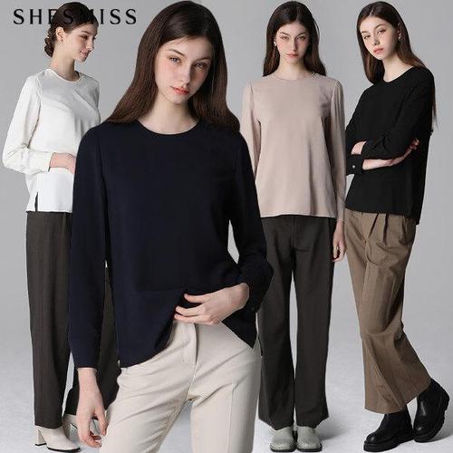 [쉬즈미스(SHESMISS)] 실키 텍스처 베이직 라운드넥 블라우스 (택가격:158000원)