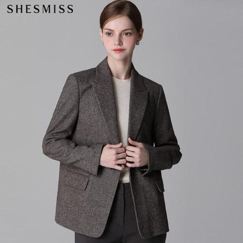 [쉬즈미스][쉬즈미스(SHESMISS)] 울 헤링본 원버튼 재킷 (택가격428000원)