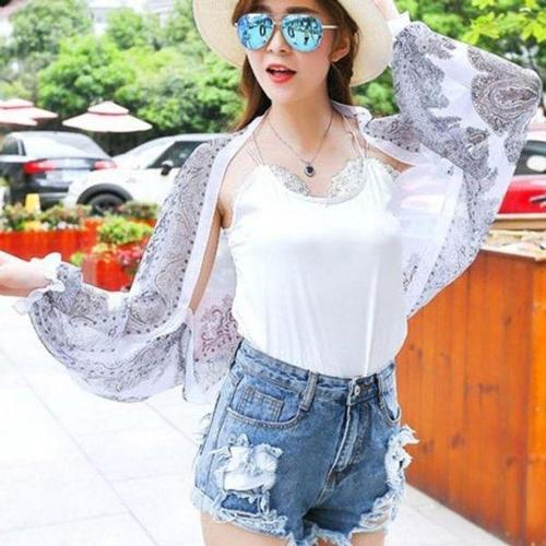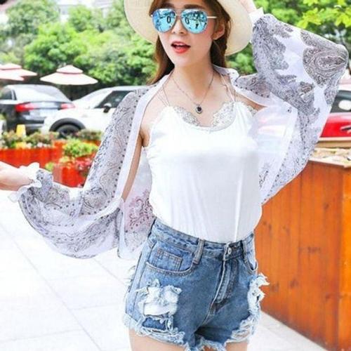여성용 여름 얇은 쿨링 시폰 에코보호 자외선 차단 숏 가디건
