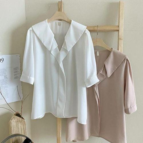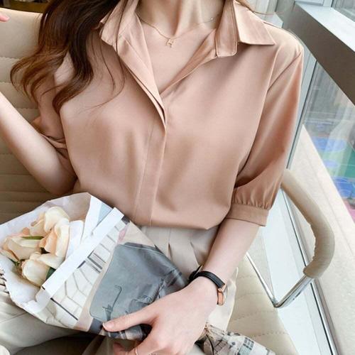 여성 5부 소매 무지 쉬폰셔츠 상의 여름셔츠 반팔