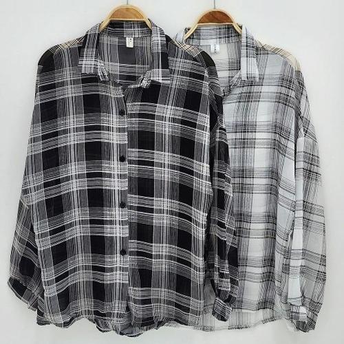 [다잇템][다잇템] 여성 FW 남방 격자 빅사이즈 비침 시폰 커버업_22894499_588872