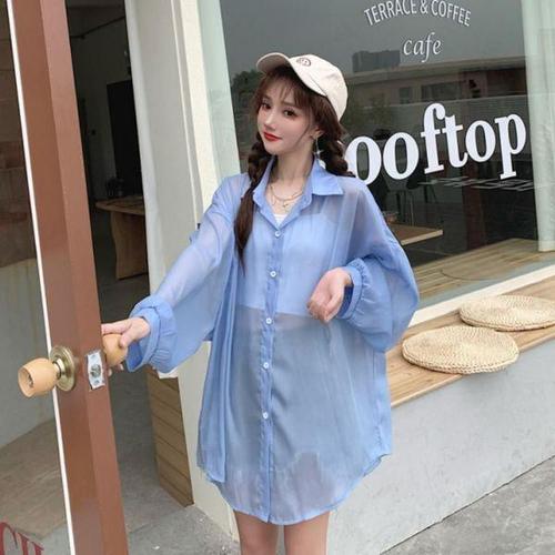 [에이치플러스몰]여자와이셔츠 시스루 쉬폰 빅사이즈 블라우스 여성셔츠