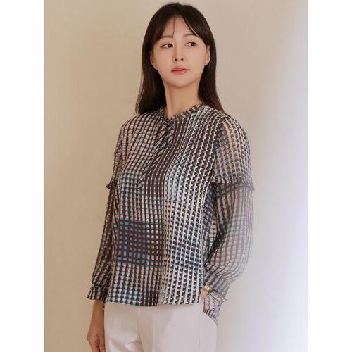 [드리다]가을 체크 패턴 리본 빅사이즈 쉬폰 블라우스 40-50대 미시 중년여성 엄마옷 하객룩 모임 오피스..