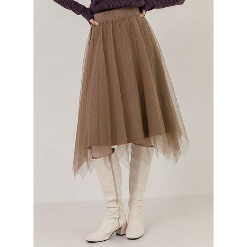 [아니베에프]A37WSK500 쉬폰 허리밴딩 2단주름 스커트_GN