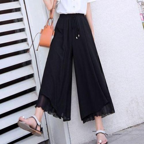 별후이 여성용 데일리 빅사이즈 중년 와이드 아이스 9부 쉬폰팬츠 옆트임 치마바지