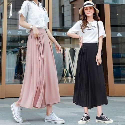 [에이치플러스몰]여름 시원한 시폰 롱팬츠 슬랙스 스커트 9부 치마바지