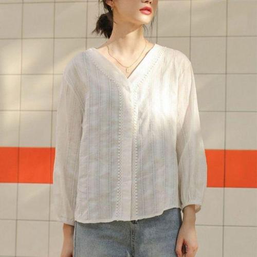 러블리무드 여성 쉬폰 가을 브이넥 얇고 블라우 WFLPSJV