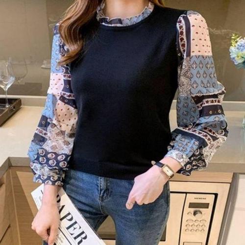 긴팔티 패턴쉬폰소매 환펀니트티 LF0574 간절기용 WD94169