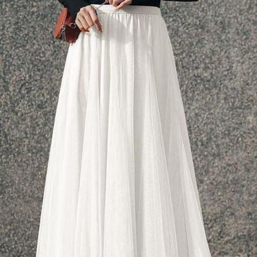쁘띠 쉬폰 롱 치마 망사 프릴웨이브 밴딩 롱 스커트