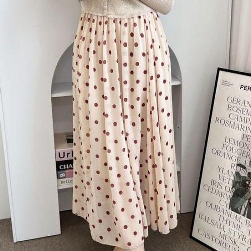 [에이치플러스몰]여자 밴딩 쉬폰 도트 러블리 롱스커트