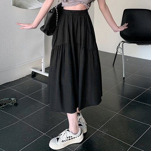 H스타일(SK)두엘스커트 봄 여성 스커트 롱 치마 머메이드 허리밴딩 데일리룩