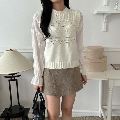 [셀럽하우스]여성조끼 XJGH8715 펀칭 쉬폰 프릴 니트 블라우스