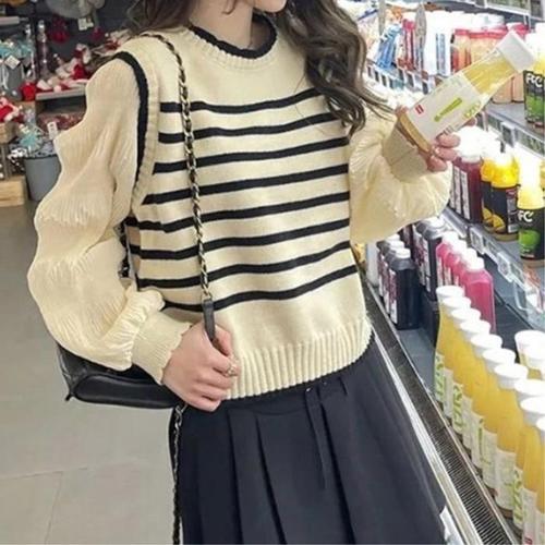 [신상오픈런]여성용 니트 베스트와 쉬폰 소매 블라우스 (39096263)