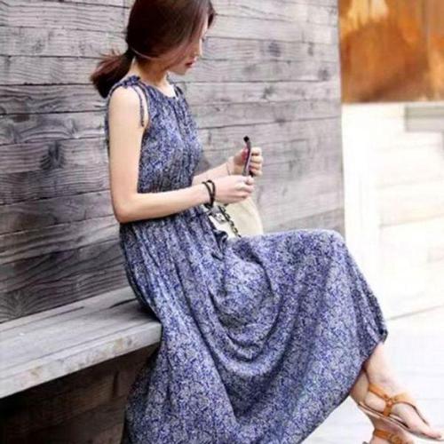 바캉스 쉬폰 원피스 여성 여름나시 비치 스커트 롱스커트 끈 나시원피스 플라워 휴양지원피스 D99U