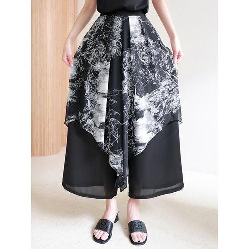 [드리다]여성 봄 여름 패턴 이중 와이드 빅사이즈 쉬폰 밴딩 팬츠 통바지 40-50대 미시 중년여성 엄마옷