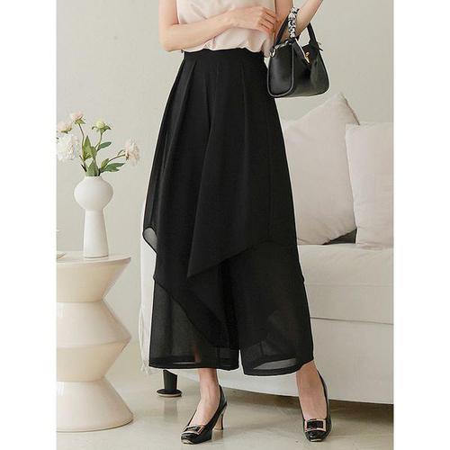 [에이치플러스몰]쉬폰 이단 밴딩 통바지 ST230309