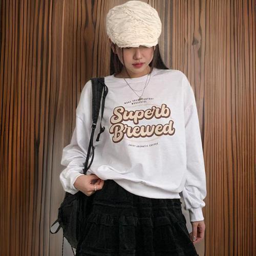 |KMT8BC9|키치 레터링 라운드 슈퍼비 여성긴팔티 봄스웨트셔츠