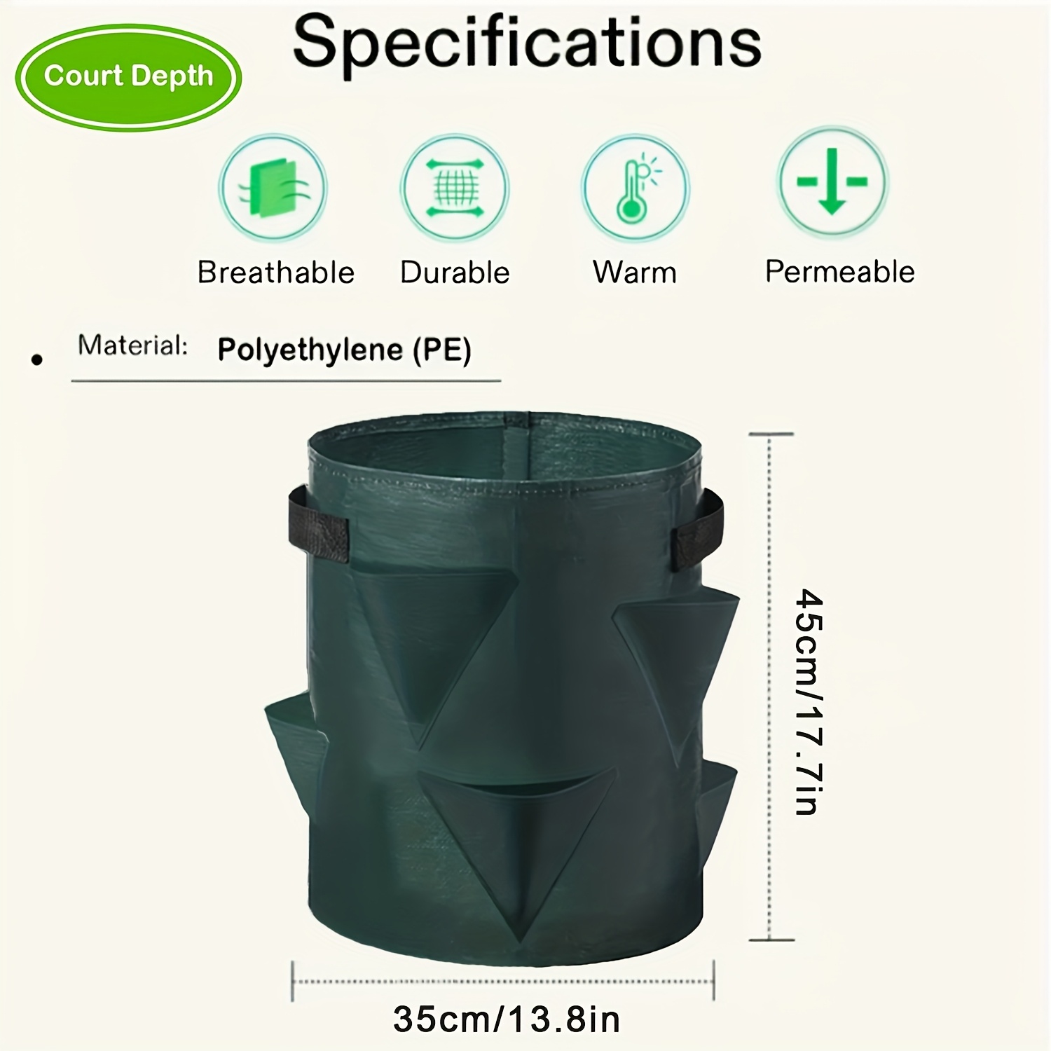 TEMU 8개의 측면 심기 포켓이 있는 딸기 식물 재배 가방, 손잡이가 달린 용기, 채소, 꽃, 허브 재배를 위한 접이식 및 내구성 있는 재배 가방
