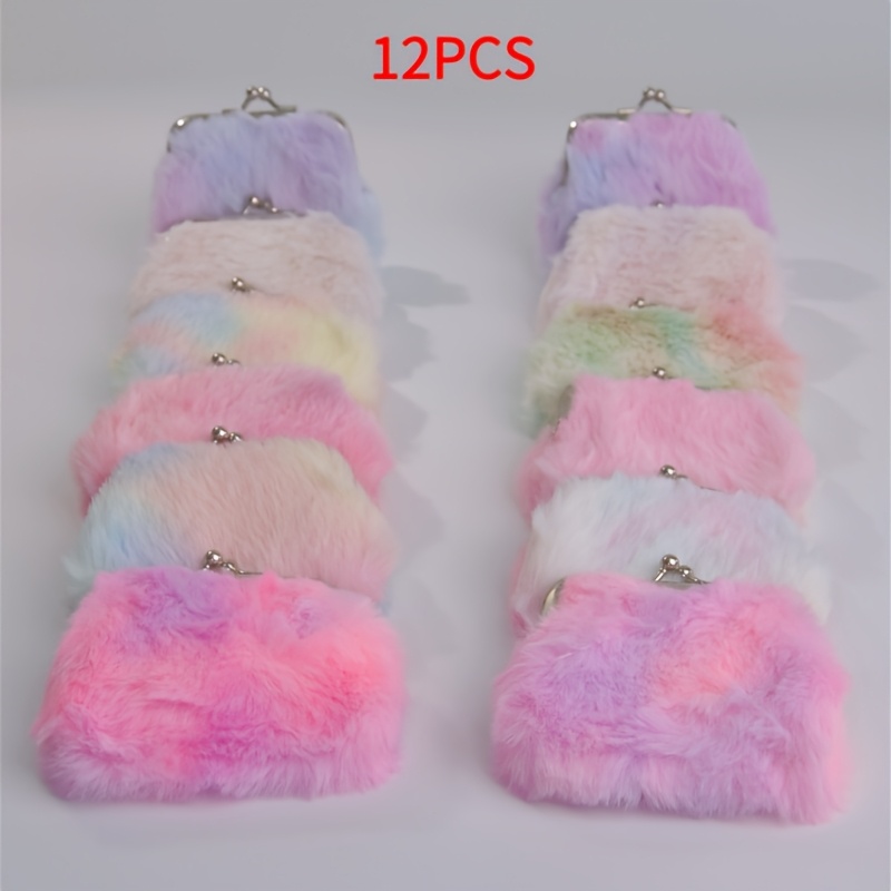 TEMU 12개 여성용 코인 지갑, 부드럽고 편안한 그라데이션 컬러 인조 모피 소재, 다용도 주얼리 백, 플러시 코인 및 카드 홀더, 스타일리시한 휴대용 소형 가방, 파우치 및 생리대 보관 가방, 야외 활동 및 정리용으로 완벽