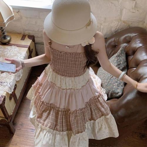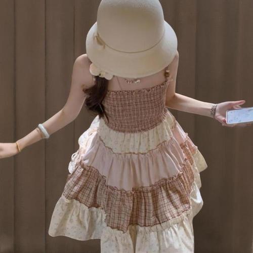 [신상오픈런]여성용 사랑스러운 패턴 프릴 캉캉 스모크 나시 드레스 (38283995)