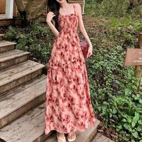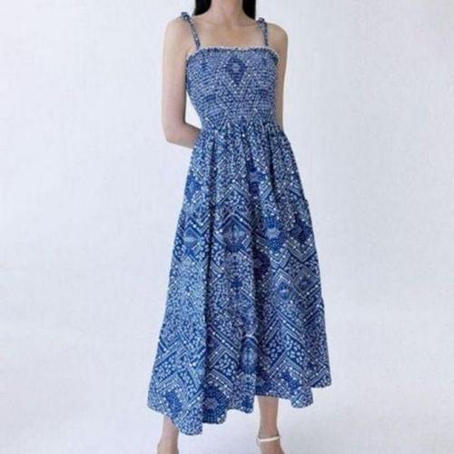 여성 휴양지 바캉스룩 끈나시 스모크밴딩 롱 원피스 EGG-WDR-20745