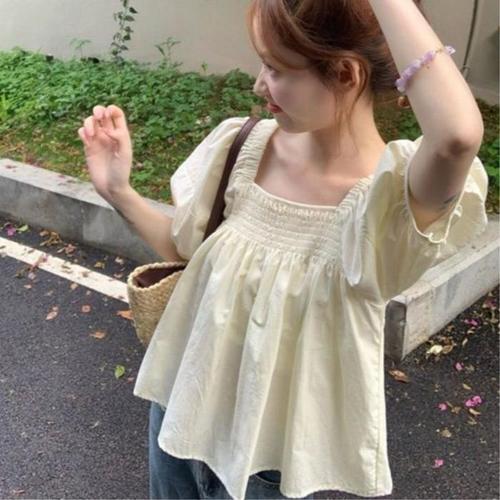 [신상오픈런]여성 스모크 플레어 반팔 블라우스 스퀘어넥 (39181252)