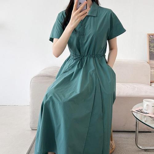 [신상오픈런]여성용 스모크 카라 스트링 롱원피스 셔츠 (36847887)