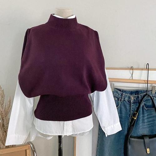 [신상오픈런]여성 단색 가오리핏 스모크 밴딩 볼륨 니트 나시 (40946864)