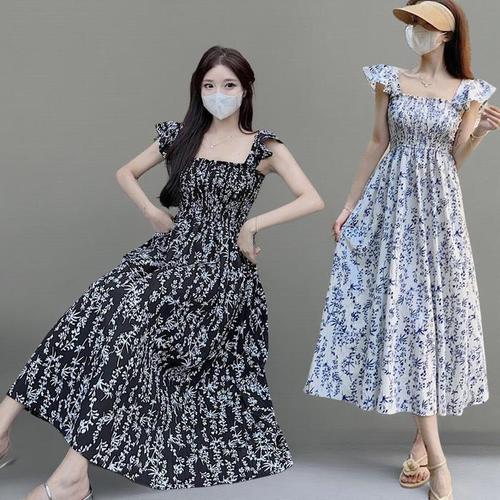 [신상오픈런]여성용 스모크 프릴 꽃무늬 롱 나시 원피스 (33436030)