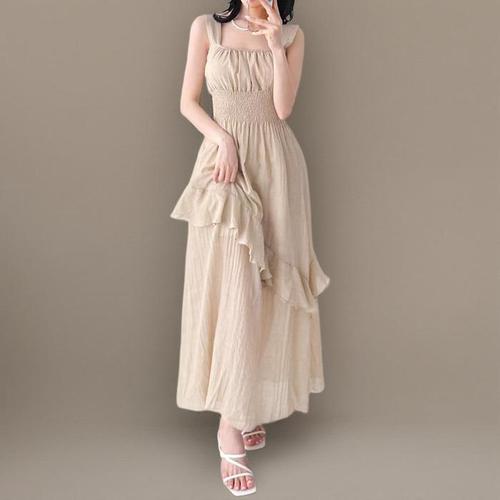 하객룩 스모크 밴딩 나시 원피스 프릴 플레어라인 롱원피스