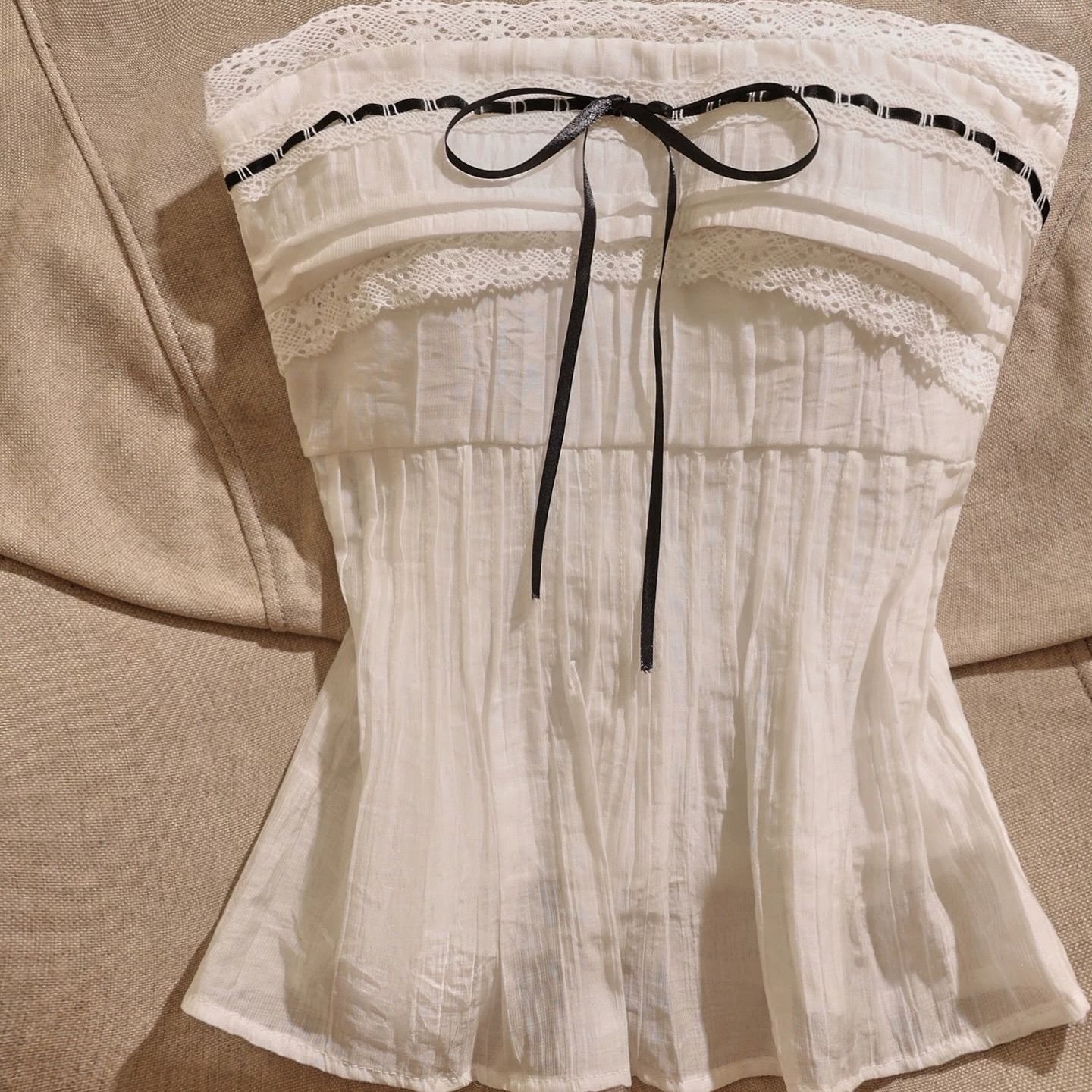 TEMU 메쉬 스플라이스 오프숄더 투웨이 웨어 순백색 우아한 허리 조임 랩탑 페티테 여성용