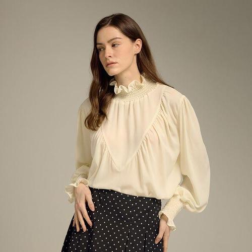 [올리브데올리브]어깨 스모킹 시어 블라우스 (OH5MB584)
