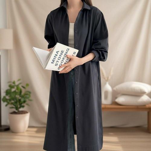 [옷자락] 여성 투웨이 카라넥 롱셔츠 봄용 77사이즈 원피스