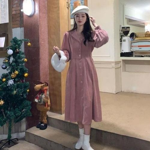 [엄지척]여성 3컬러 데이트룩 코듀로이 진주 카라 넥 롱원피스_19957787_667501