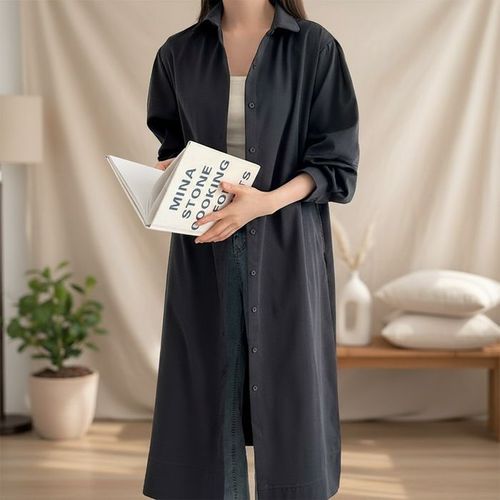 [다잇템]여성 봄용 롱셔츠 2WAY 빅사이즈 카라넥 원피스