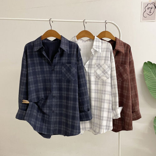 허니제이 / 페리티 롱 체크 스웨이드 포켓 셔츠(3color)
