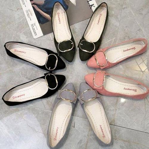 스웨이드 사각버클 플랫슈즈 4컬러 여성 단화 구두