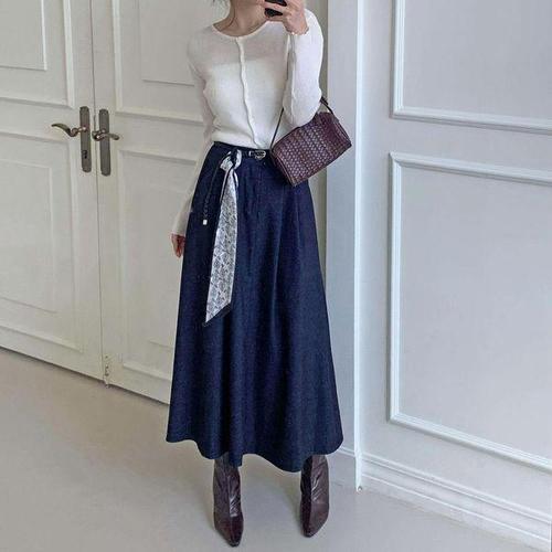 [옷자락]여성용 데님 롱스커트 벨트형 뒷밴딩 클래식 스카프 디자인